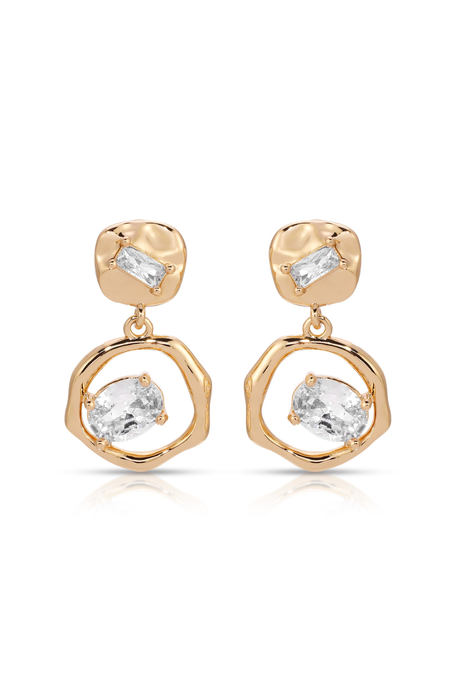 • 18k Gold Plated, Brass, Cubic Zirconia with sculptural detailing