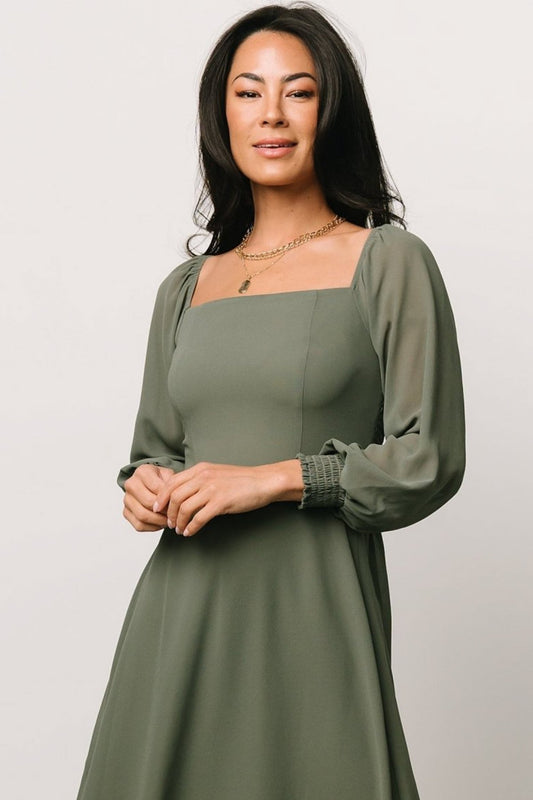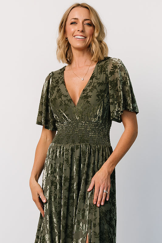 Marta Smocked Midi Dress | Dusty Olive Floral