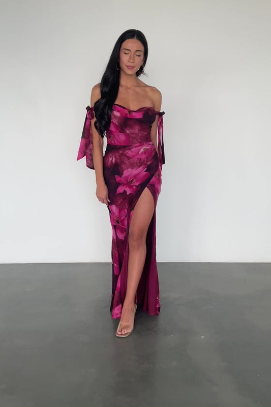 Allegra Off Shoulder Maxi Dress | Berry Rouge Floral