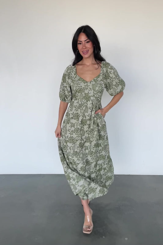 Arabella Embroidered Tulle Maxi Dress | Dark Green Floral