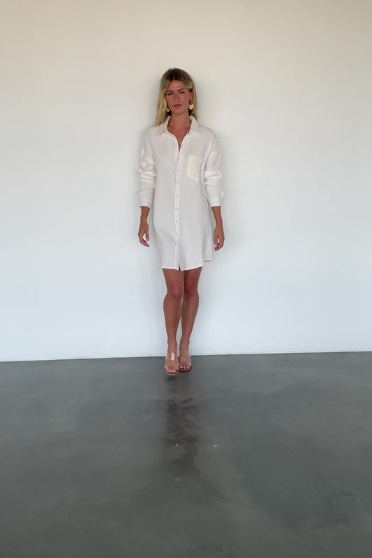 Andres Button Shirt Dress | Ivory