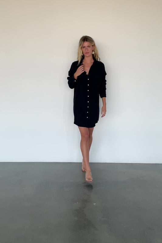 Andres Button Shirt Dress | Black