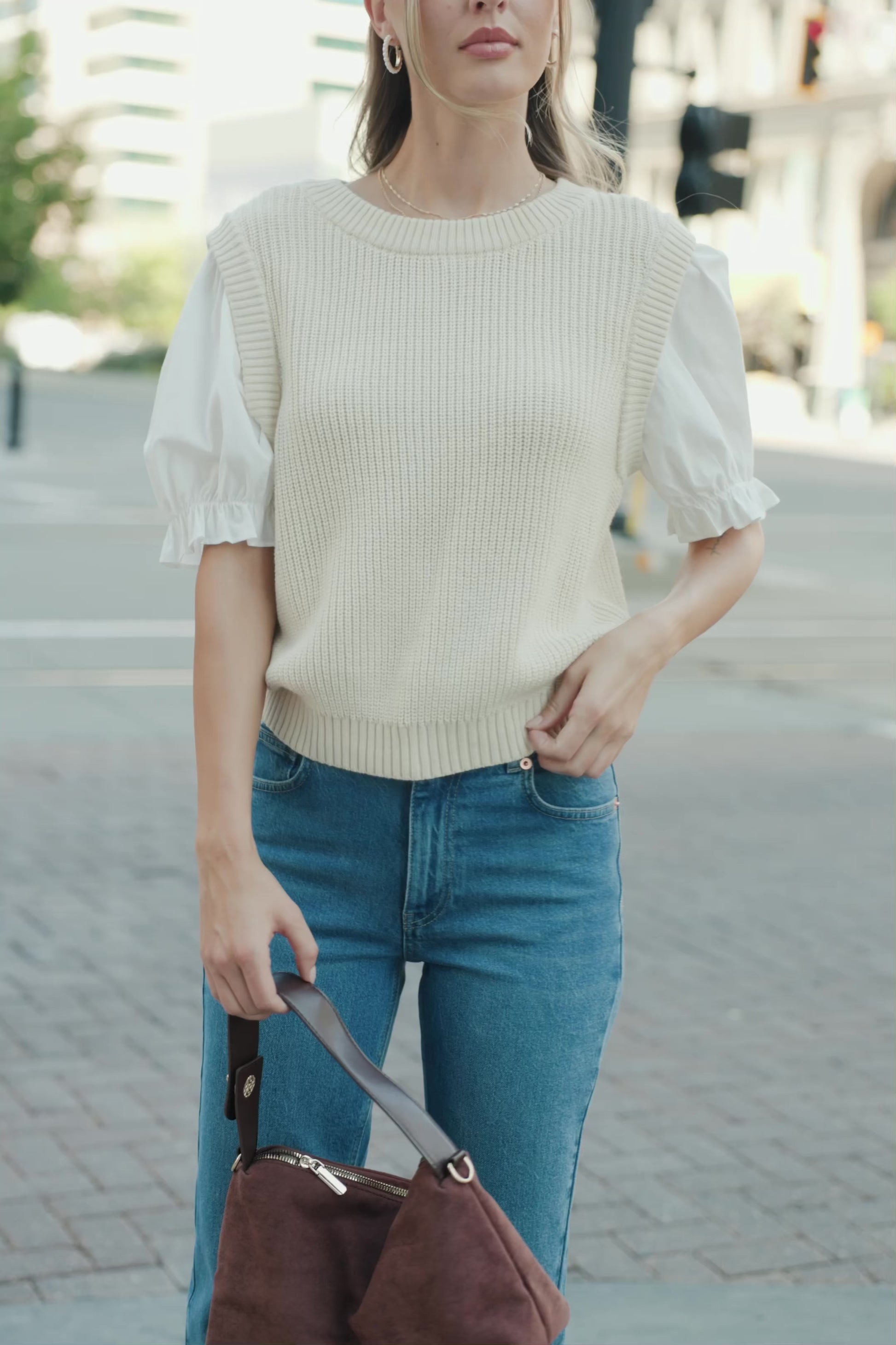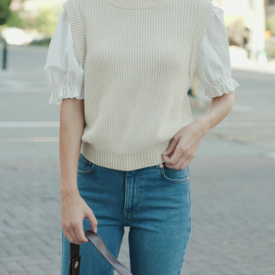 • Cream sweater vest with attached cotton Ivory accent sleeves