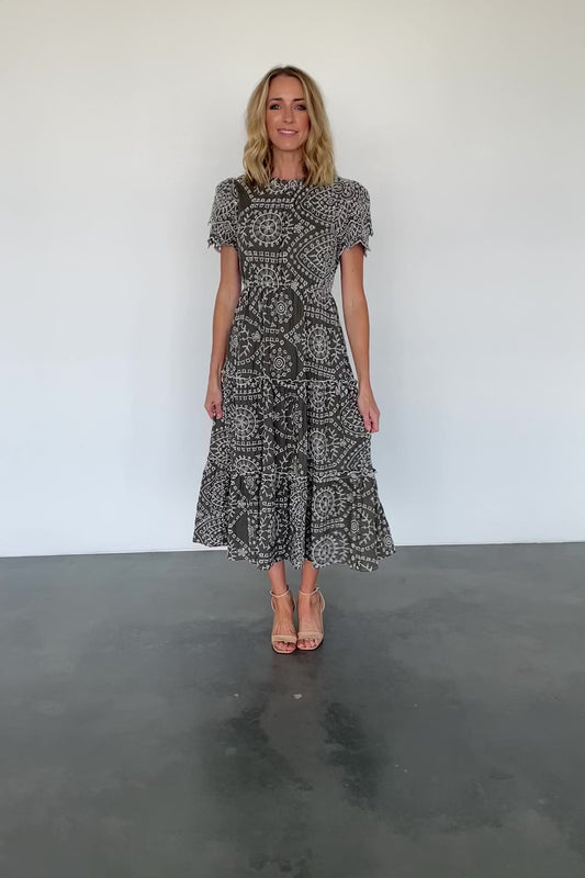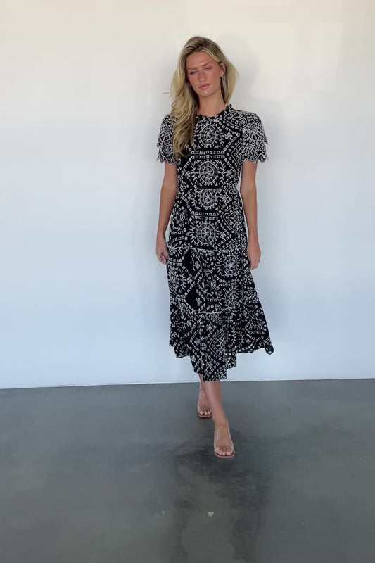 Lainey Smocked Dotted Midi Dress | Midnight Blue