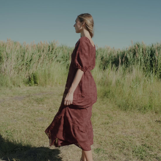 My daughter wore this dress for fall family photos to coordinate with my Olivia maxi dress in deep topaz. The two dresses paired so well together in that this dress is more ivory in person and we both loved the texture of the fabric.