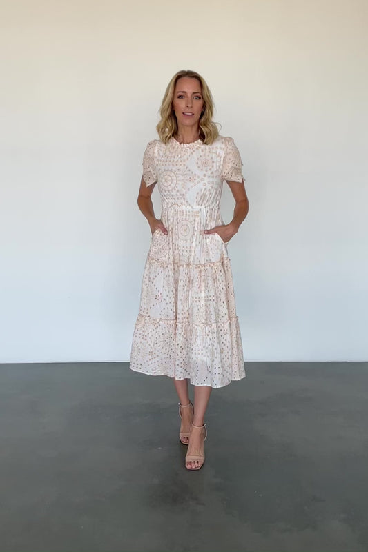 Mirabel Eyelet Midi Dress | White + Natural