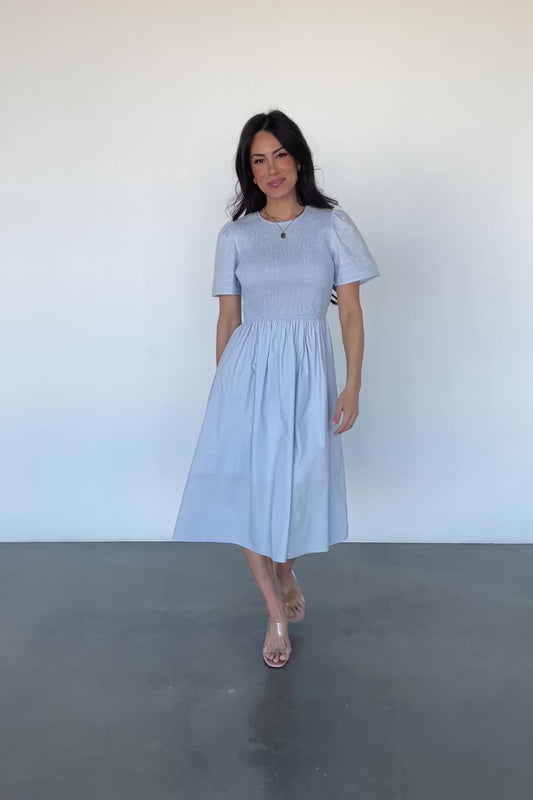 Farrah Smocked Midi Dress | Light Blue