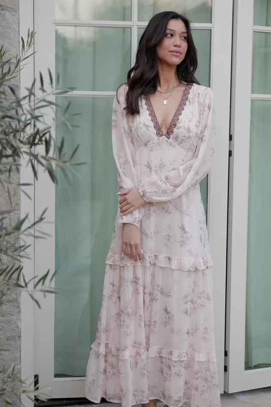 Rumi Deep V Maxi Dress | Beige + Clove Floral