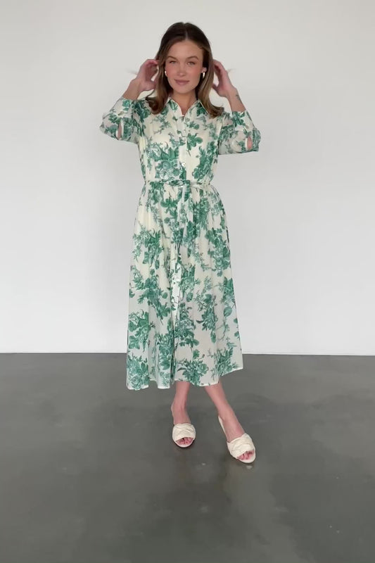 Eunice Button Midi Dress | Cream + Green Floral