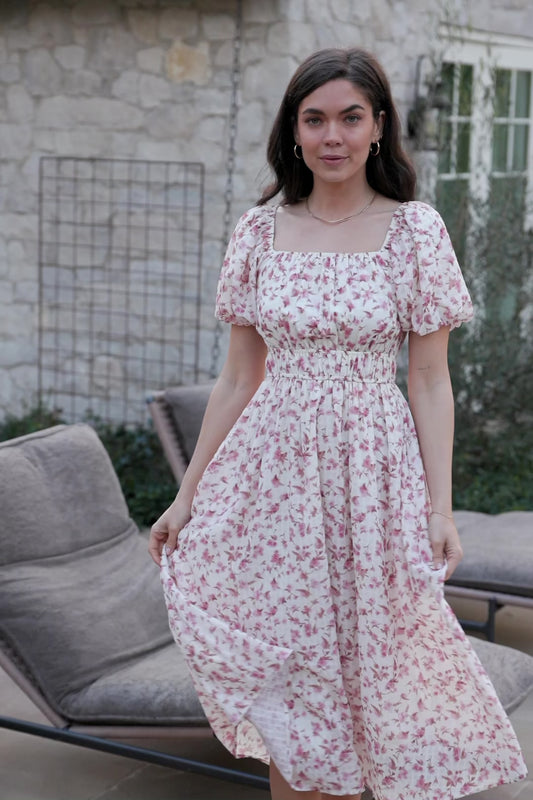 Dorine Midi Dress | Ivory + Blush Floral