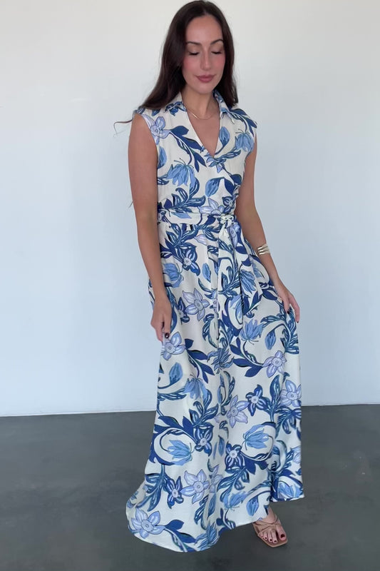 Almeria Maxi Dress | Ivory + Blue Floral