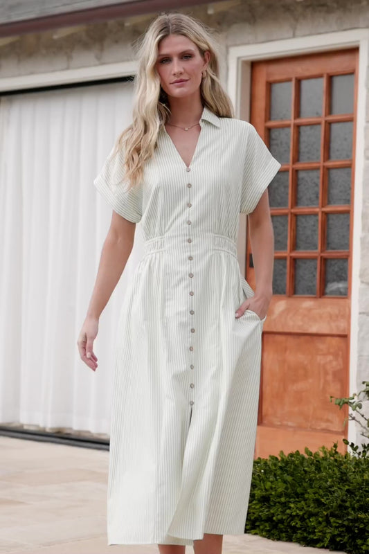 Larah Button Dress | Sage Stripe