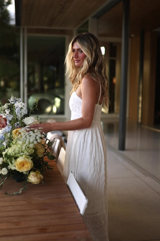 Joanie Smocked Dress | White + Sage