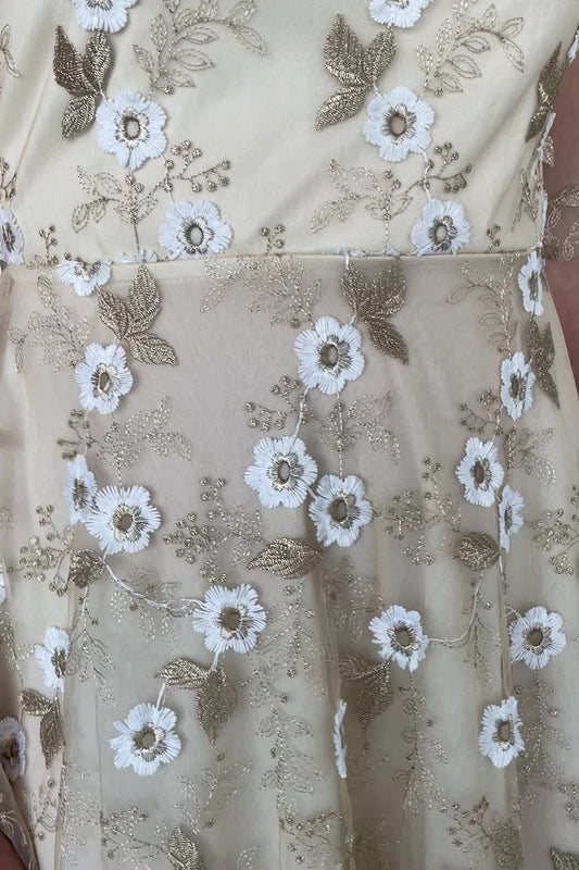 Arabella Embroidered Tulle Maxi Dress | Gold + White