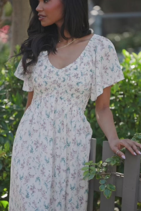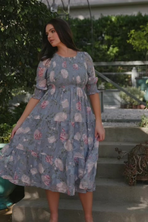 Nellie Smocked Midi Dress | Dusty Blue Floral
