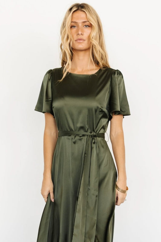We now offer swatches of our Agnes Satin Maxi Dress!