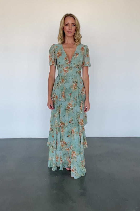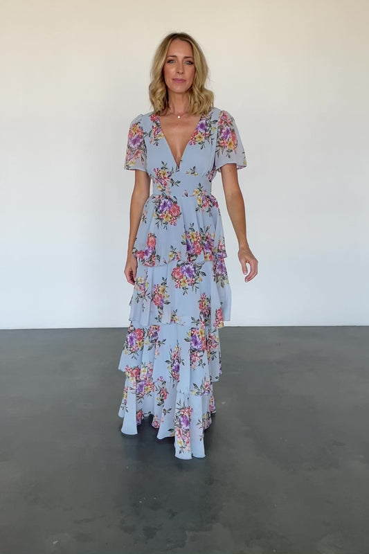 Montaigne Ruffle Maxi Dress | Blue Sage Floral