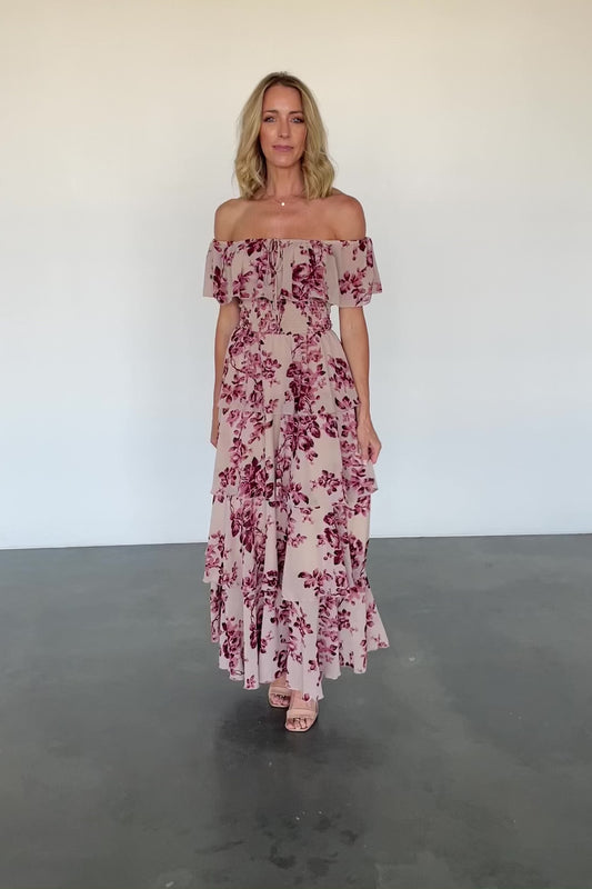 Carina Off Shoulder Maxi Dress | Nude + Rose