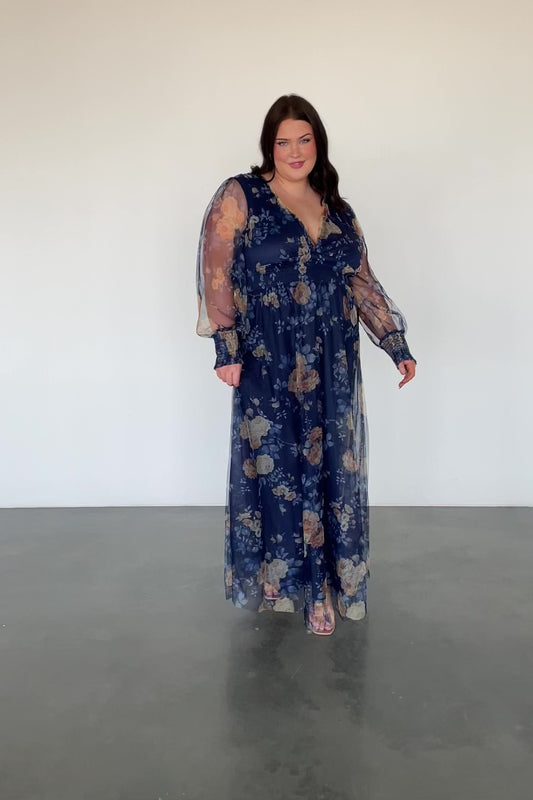 Layla Tulle Maxi Dress | Dark Blue Floral