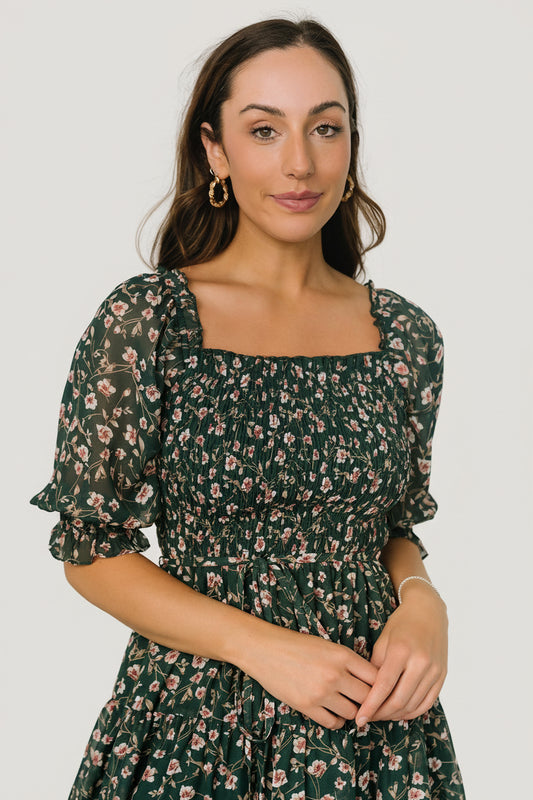 Azlyn Smocked Short Dress | Green + Pink Floral