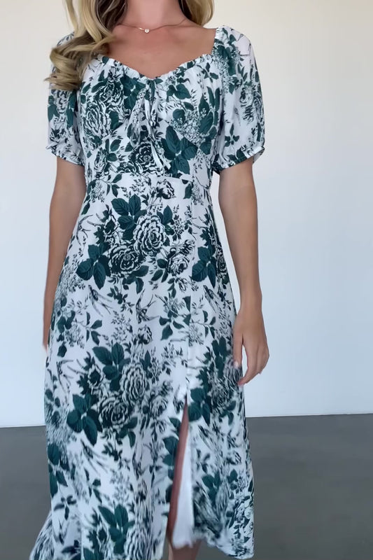 Azlyn Smocked Short Dress | Green + Pink Floral