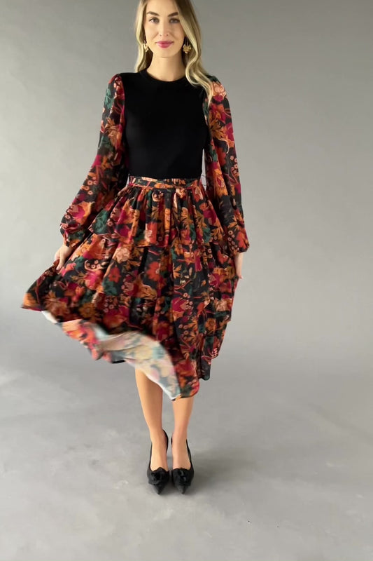 Janna Velvet Midi Dress | Black + Bronze Floral