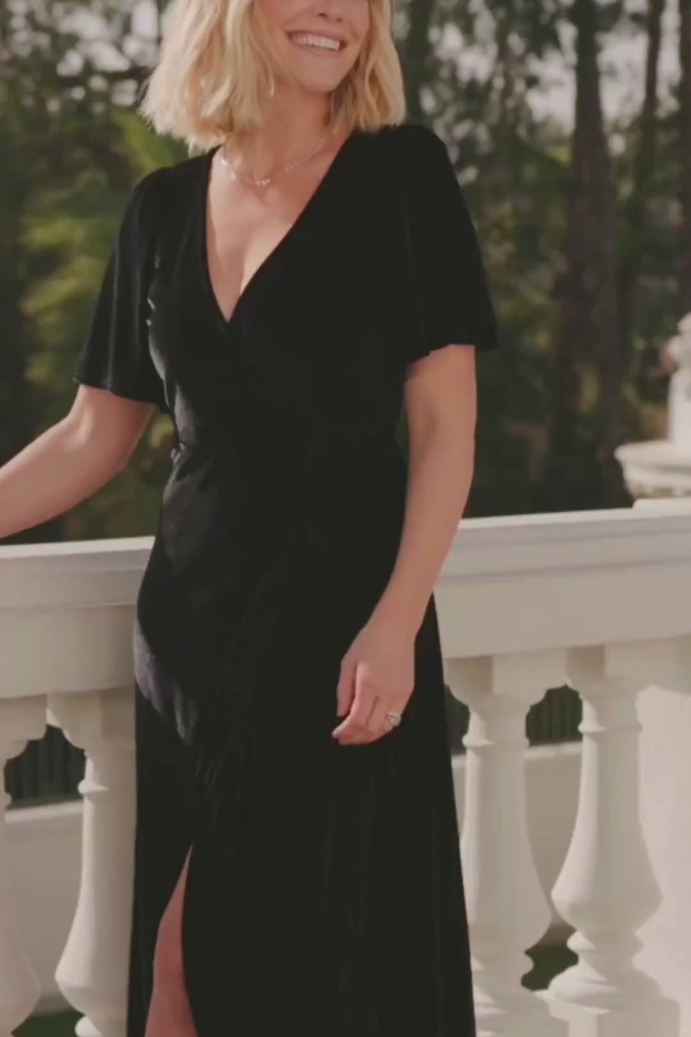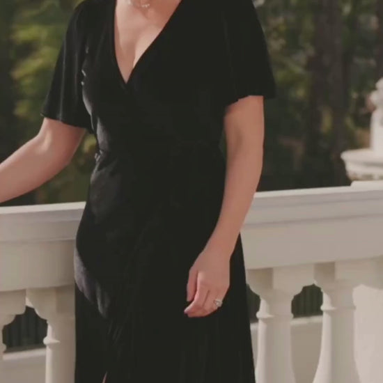 Float into every occasion in the Katelyn Velvet Wrap Dress — a maxi-length, tulip-skirt wrap designed to flatter. Soft, slightly stretchy velvet drapes smoothly over the body while a fully lined interior keeps the silhouette polished and opaque.