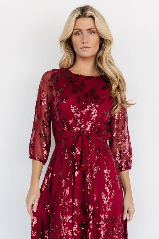 Bowman Deep V Maxi Dress | Burgundy Multi