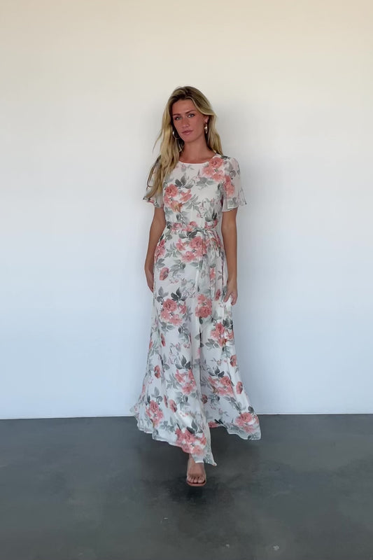 Naomi Short Sleeve Maxi Dress | Ivory + Coral Floral