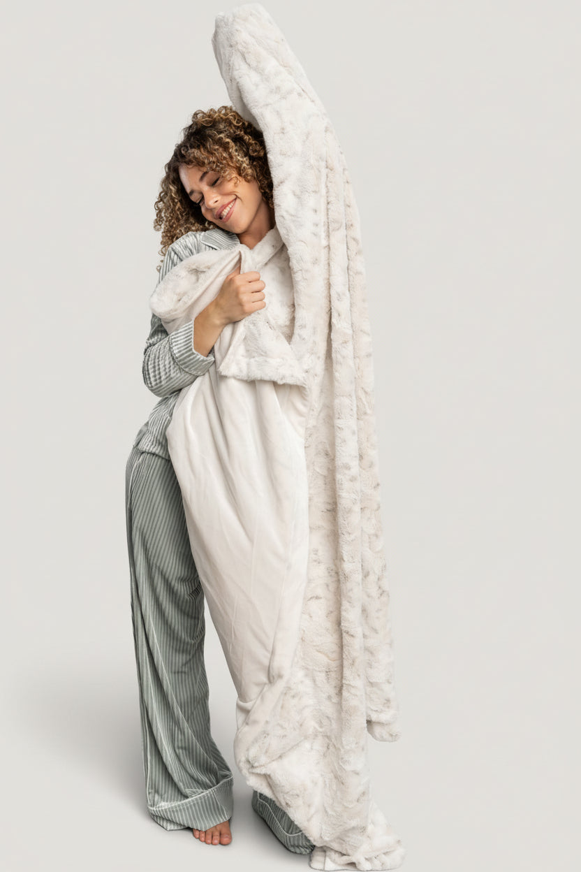Wrap up in the Cambria Oversized Plush Throw Blanket — a neutral-toned, ultra-soft layer designed for lounging at home, travel, or thoughtful gifting. Generously sized at approximately 60 x 70 inches, it offers cozy coverage without overwhelming smaller sofas or chairs.