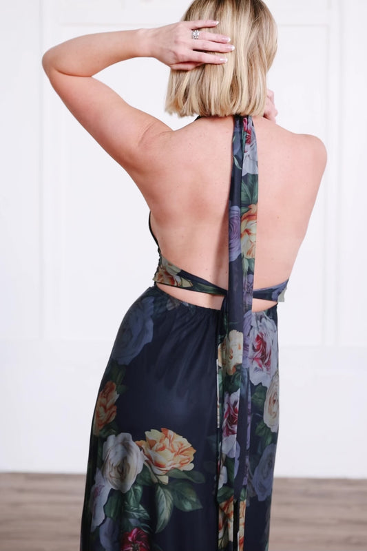 Dresden Halter Maxi Dress | Navy Floral
