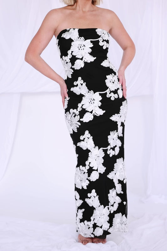 Chantelle Strapless Maxi Dress | Black + White Floral