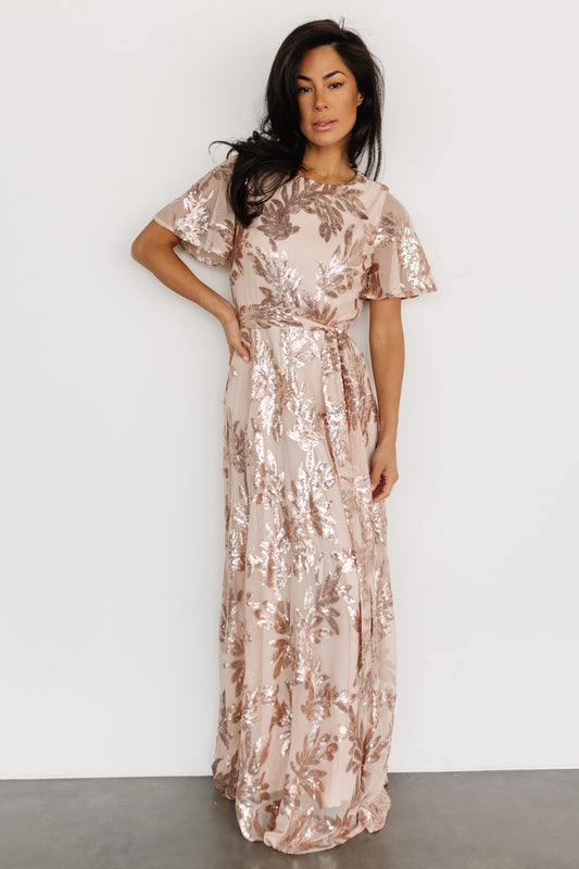 Muse Sequin Maxi Dress | Rose Gold