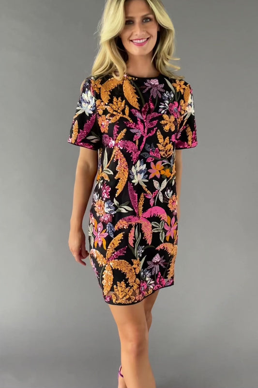 Patricia Sequin Short Dress | Black