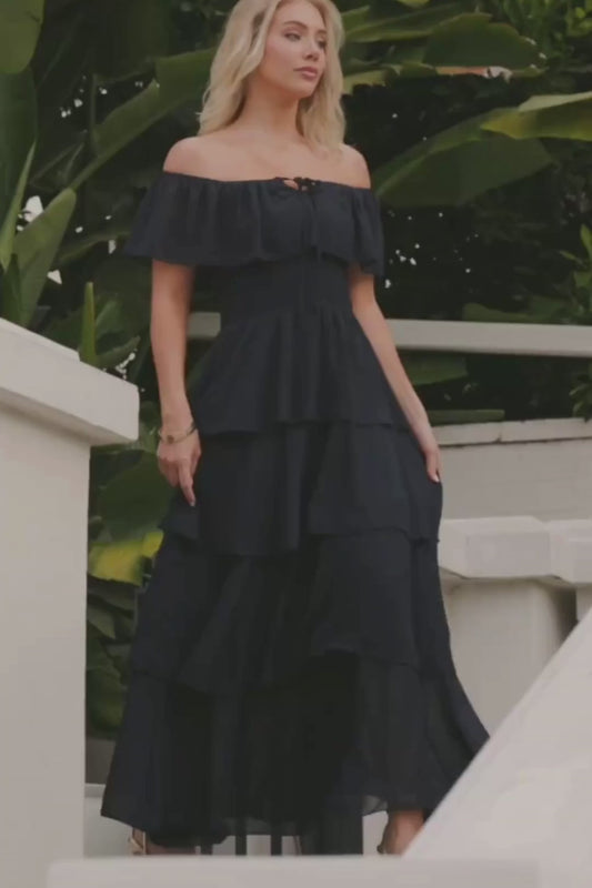 Carina Off Shoulder Maxi Dress | Black + Mauve Floral