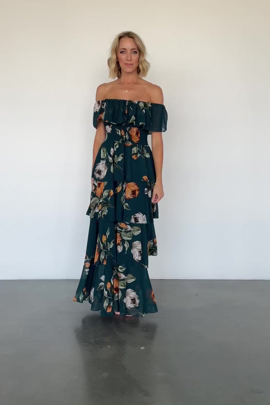 Carina Off Shoulder Maxi Dress | Deep Topaz Floral