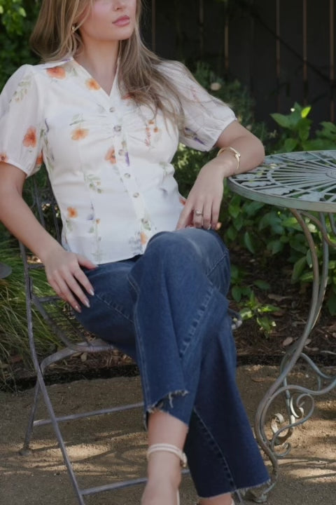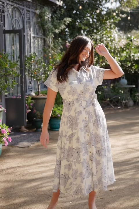 Claire Button Up Midi Dress | Ivory + Blue Floral