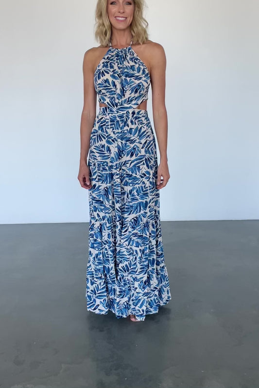 Brett Halter Maxi Dress | Cobalt Print