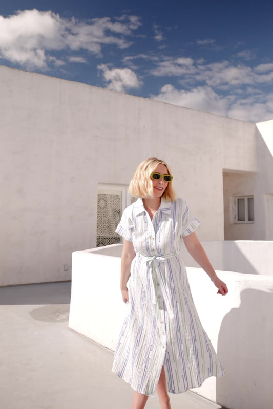 Dolores Smocked Midi Dress | Ivory + Blue Floral