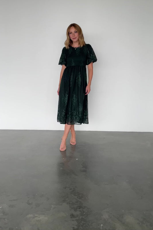 Corrine Embroidered Midi Dress | Emerald