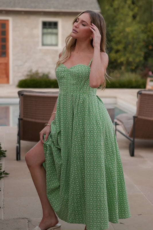 Gracelyn Embroidered Sweetheart Dress | Green Floral