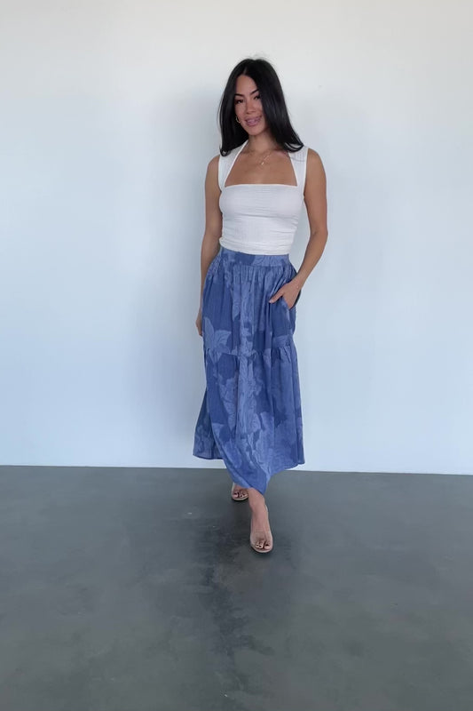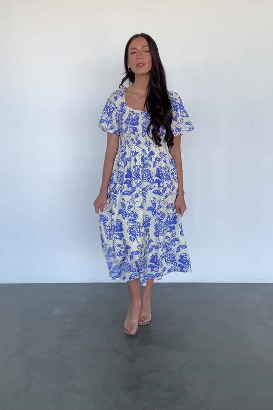 Dolores Smocked Midi Dress | Ivory + Blue Floral