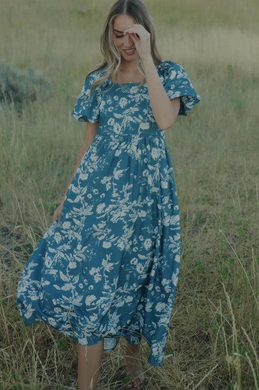 Haddie Smocked Midi Dress | Light Blue + Rose Floral