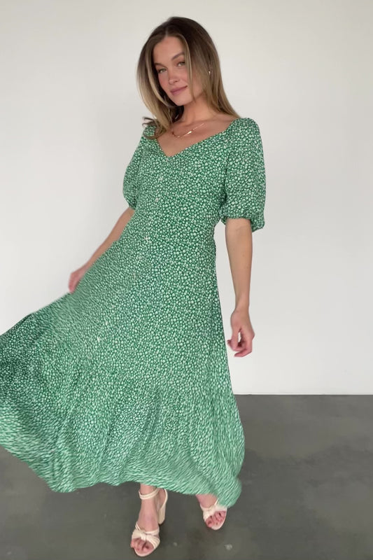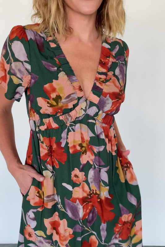 Naomi Short Sleeve Maxi Dress | Dark Green Floral