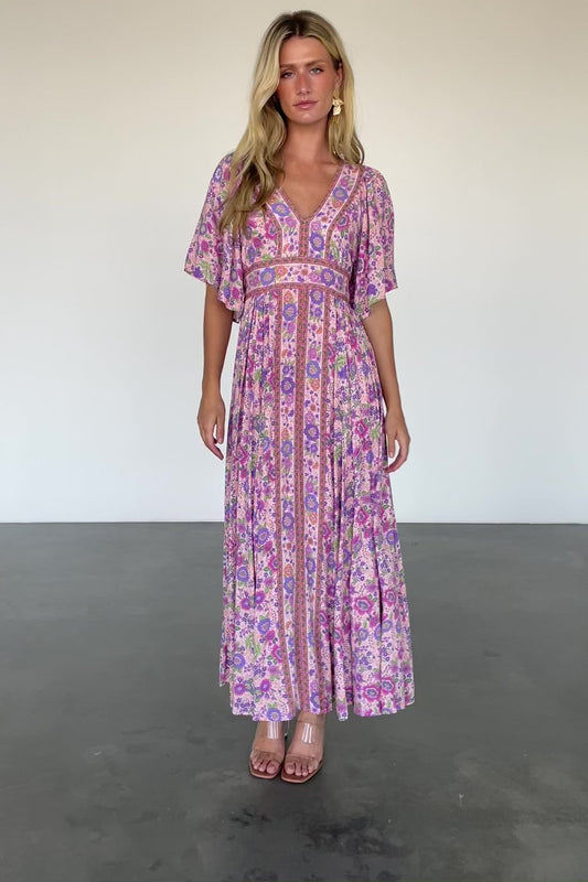 Talia Off Shoulder Maxi Dress | Purple Floral