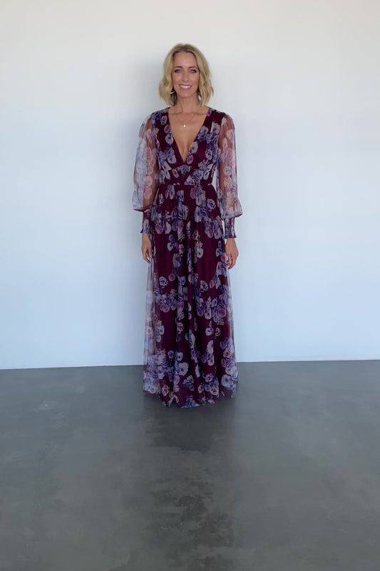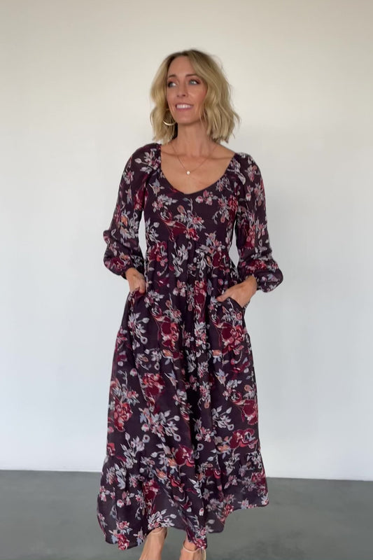 Tamara Midi Dress | Deep Plum + Dark Bronze Floral