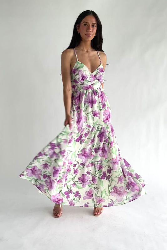 Tessa Tiered Maxi Dress | Lilac Gray Floral
