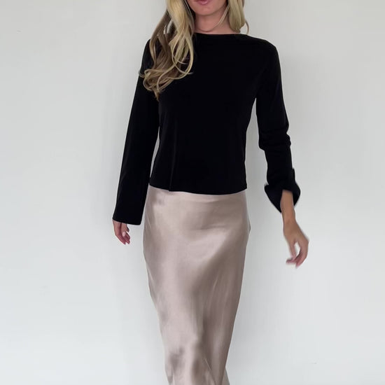 - Paired with our Celeste Satin Midi Skirt in Champagne