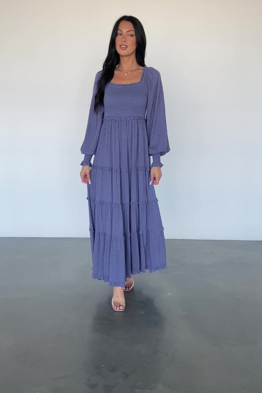 Amanda Smocked Dotted Maxi Dress | Dusk Blue