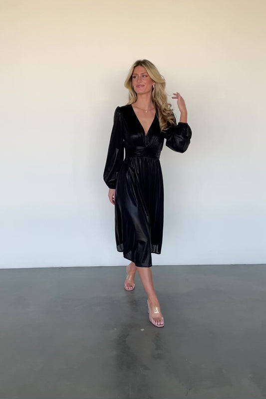 Ciara Ruched Midi Dress | Black Metallic